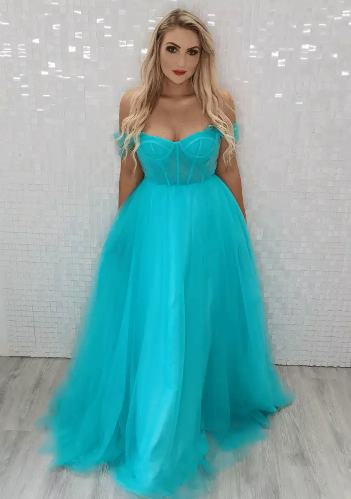 Make a stunning entrance in the Alix Aqua Ballgown, a dreamy off-the-shoulder design crafted in flowing layers of soft aqua tulle that sweeps effortlessly to the floor. The structured boned corset bodice with its sweetheart neckline cinches beautifully at the waist, creating a romantic, princess-worthy silhouette that’s perfect for your debs night. An in-store exclusive available only at Obsession Showroom.