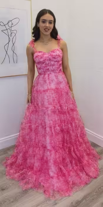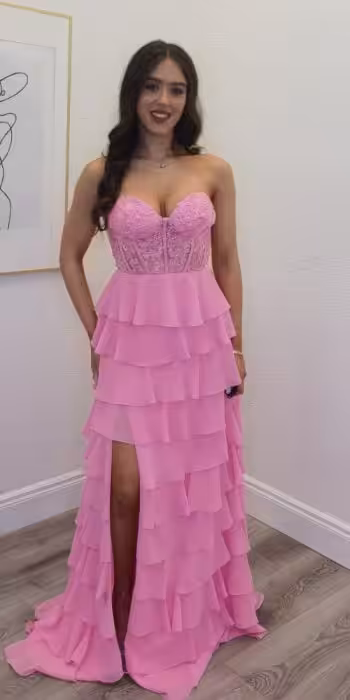 Pink Corset Ruffle Gown 240708