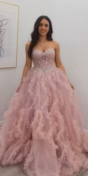 Zoe Blush Pink Beaded Corset Ruffle Ballgown