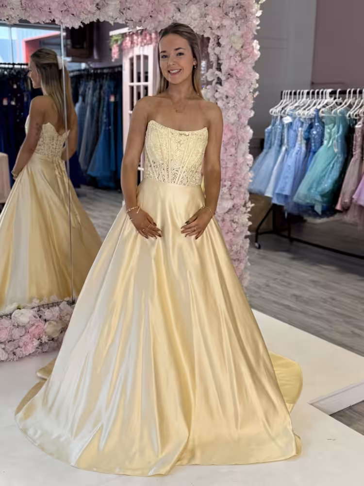 Eva Strapless Lemon Aline Evening Gown