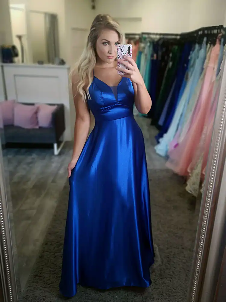 Make a stunning entrance in the OB2188 Royal Blue Gown, a sleek and sophisticated floor-length A-line dress crafted from luxurious satin fabric that catches the light beautifully with every step. The elegant V-neckline with a subtle illusion panel adds a touch of allure, while the fitted bodice and flowing skirt create a perfectly flattering silhouette. An ideal choice for your Debs night, this timeless gown effortlessly blends classic glamour with modern elegance.