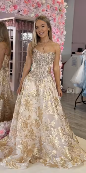 • kyra white and gold gown