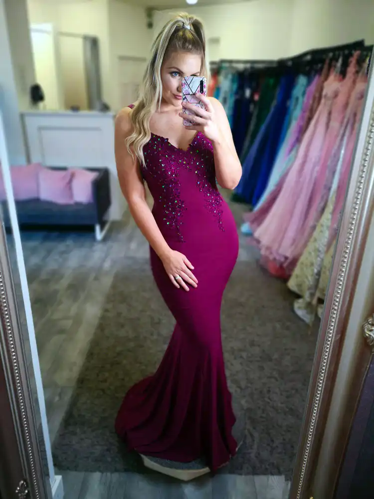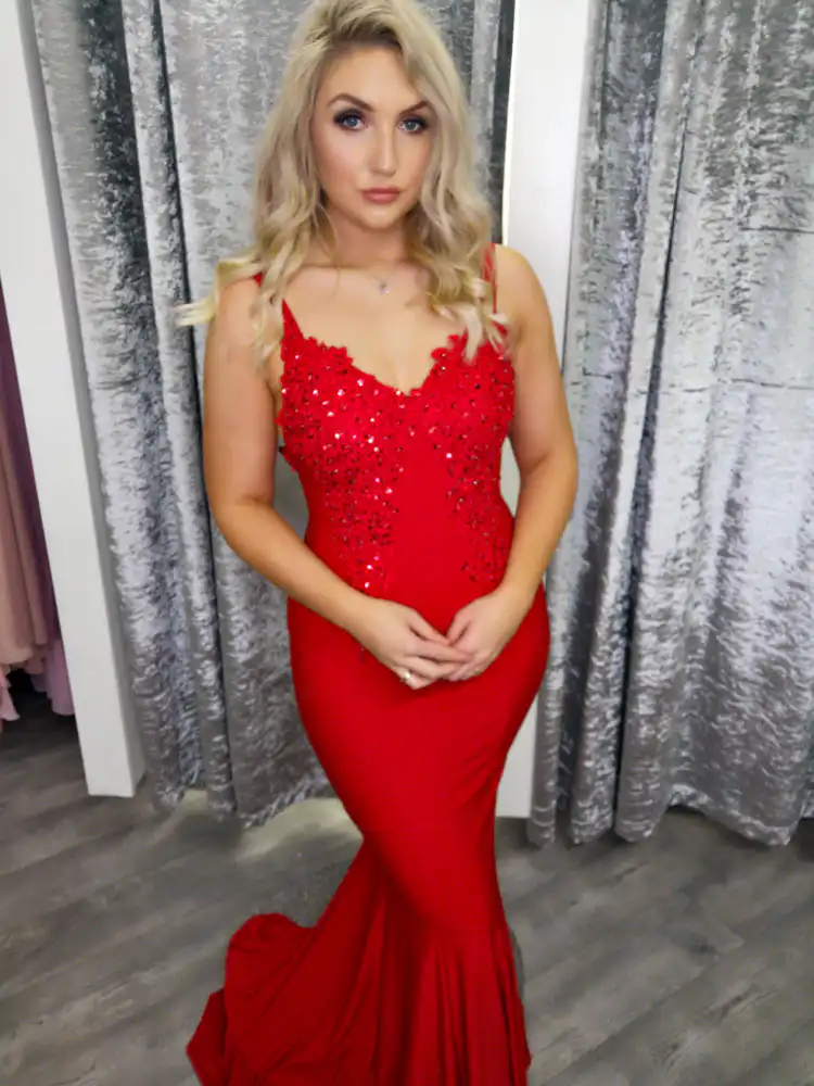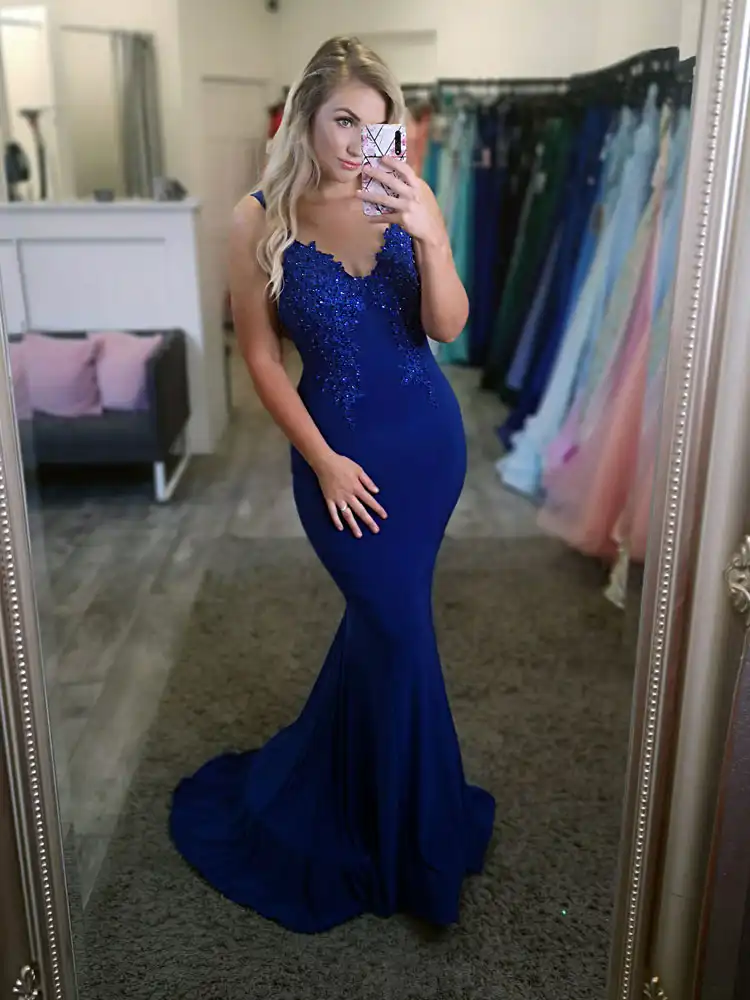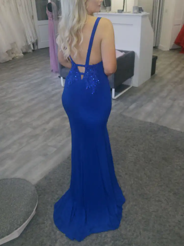 This show-stopping royal blue mermaid gown is the ultimate choice for your debs night, featuring a elegant V-neckline adorned with intricate lace and beaded appliqué detail that adds a touch of glamour to the fitted bodice. The sleek, figure-hugging silhouette flows beautifully into a dramatic fishtail train, crafted from a luxurious stretch fabric that moves effortlessly and flatters every curve. Perfect for making a lasting impression on your special evening, the Paris Evening Gown is a timeless yet modern choice for any formal occasion. An in-store exclusive available only at Obsession Showroom.