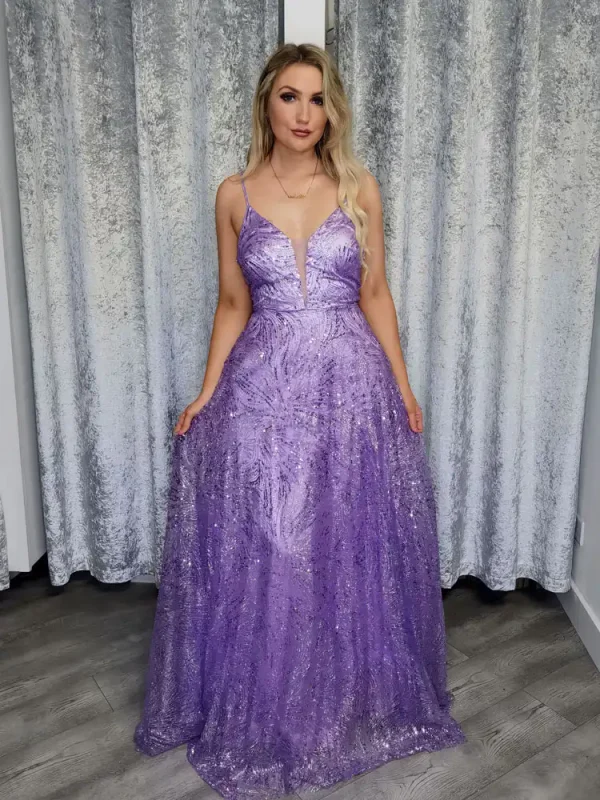 Ria Lilac Glitter Gown