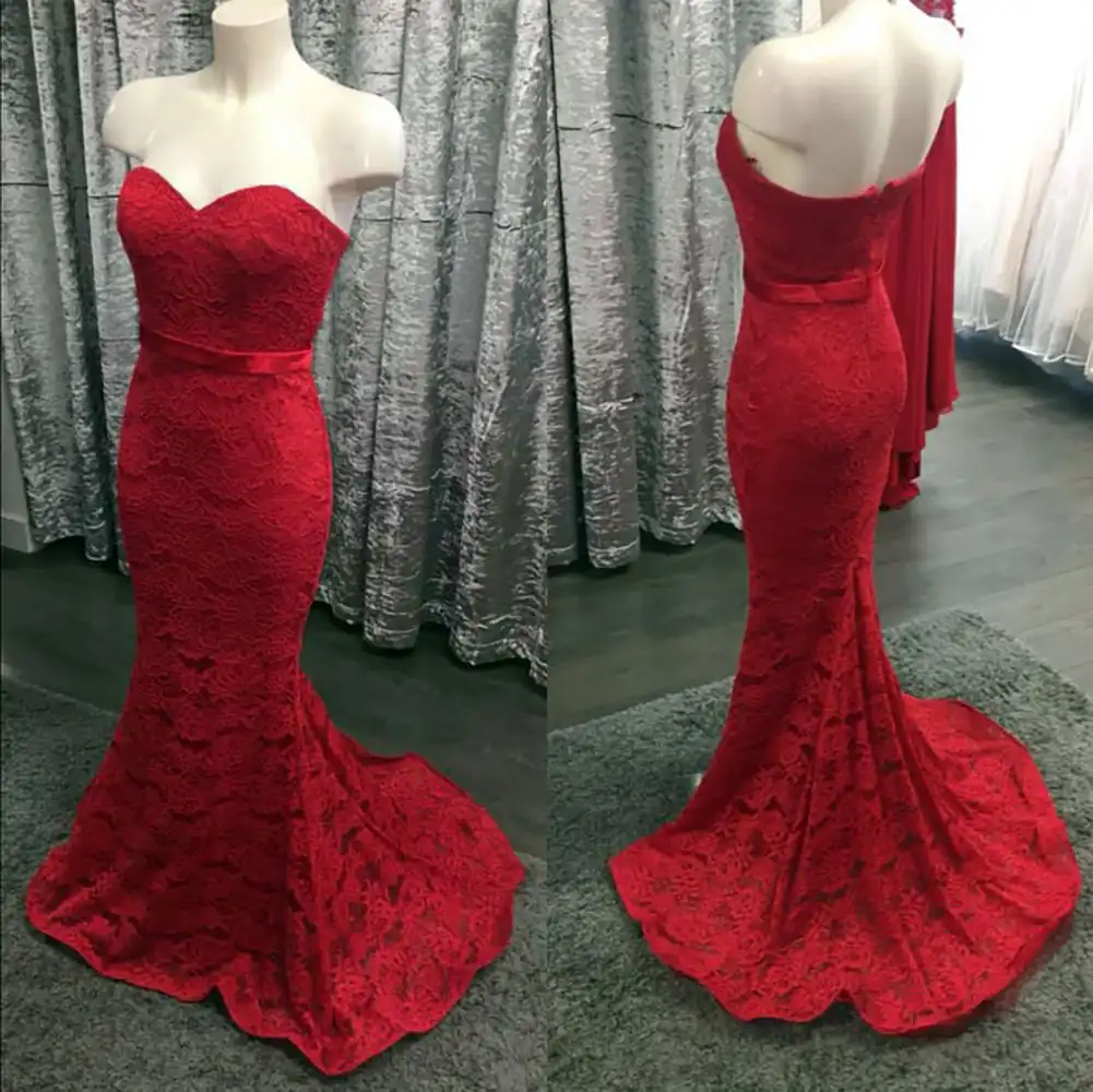 This stunning SD2115 is a show-stopping red lace mermaid gown that will turn heads at any debs night. Featuring a sweetheart neckline, a figure-flattering silhouette, and an elegant trailing skirt, it is beautifully crafted from intricate floral lace throughout and finished with a delicate satin waist tie for a touch of refined glamour. An in-store exclusive available only at Obsession Showroom.
