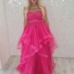 The Janie Red Sparkle Gown is a show-stopping floor-length dress crafted in a rich red stretch fabric, adorned with an all-over scatter of sparkling rhinestone embellishments that catch the light beautifully from every angle. Featuring a flattering scoop neckline with delicate spaghetti straps, a figure-hugging silhouette, and a daring front split, this gown is designed to make a lasting impression on your debs night. Finished with a graceful train and understated white strappy heels pairing potential, the Janie is the ultimate choice for any girl who wants to own the room. An in-store exclusive available only at Obsession Showroom.