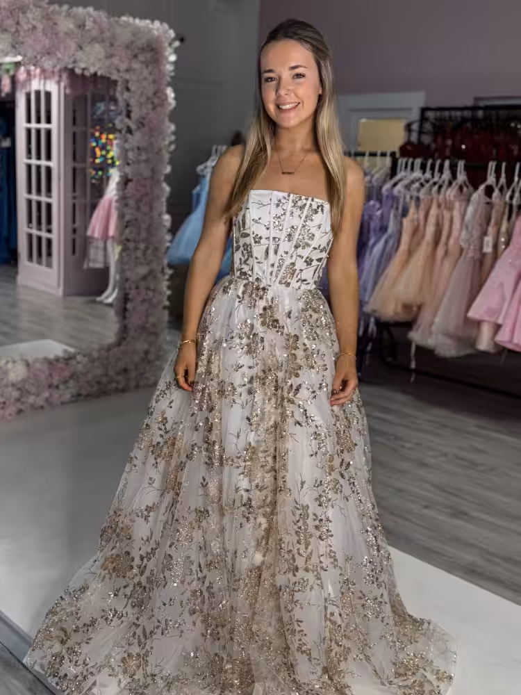 Keelan White and Gold Evening Gown
