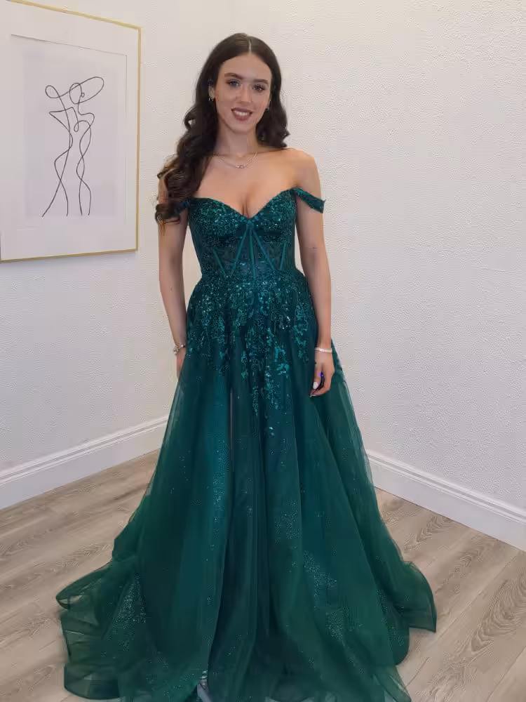 Kika Off Shoulder Green Ballgown