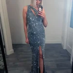 Make a bold statement at your debs in the stunning Kylo Red Dress, a floor-length fitted gown covered from neckline to hem in eye-catching red sequins that shimmer with every move. Featuring a flattering square neckline, sleek mermaid silhouette, and a daring thigh-high split, this dress is designed to turn heads from the moment you walk in. Complete with a small train and finished with delicate spaghetti straps, the Kylo is a showstopping choice — now available at a special sale price at Obsession Showroom, Carlow.