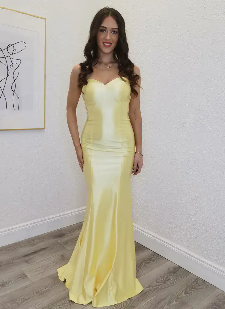 The Meg Lemon Fitted Gown is a stunning floor-length silhouette crafted in a luxurious, high-sheen satin fabric that catches the light beautifully with every movement. Featuring an elegant sweetheart neckline and a sleek mermaid cut that hugs the curves before flowing into a graceful skirt, this gown exudes effortless glamour in the softest butter-yellow hue. Perfect for your debs night, it’s the kind of dress that turns heads from the moment you walk in the room. An in-store exclusive available only at Obsession Showroom.