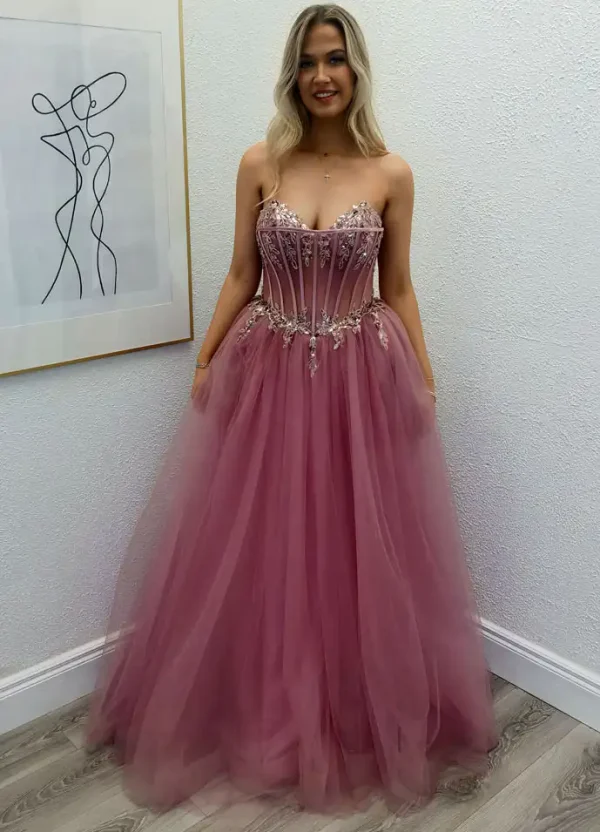 A dreamy dusky rose ballgown, the Melody is designed to turn heads at your debs night. Featuring a structured boned corset bodice adorned with delicate floral beading and crystal embellishments, it flows effortlessly into a voluminous soft tulle skirt for an enchanting princess silhouette. The sweetheart neckline adds a touch of romance, making this gown the ultimate choice for your most unforgettable evening. An in-store exclusive available only at Obsession Showroom.