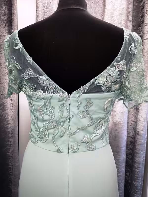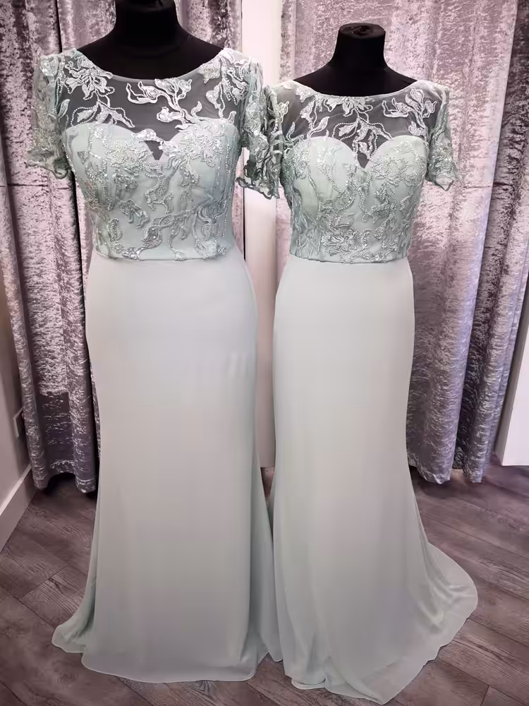 These bridesmaids are in stock in sage green but can be pre-order in over 80 colours so get in touch by email if there is a particular colour you need. It also is available to order up to size 26