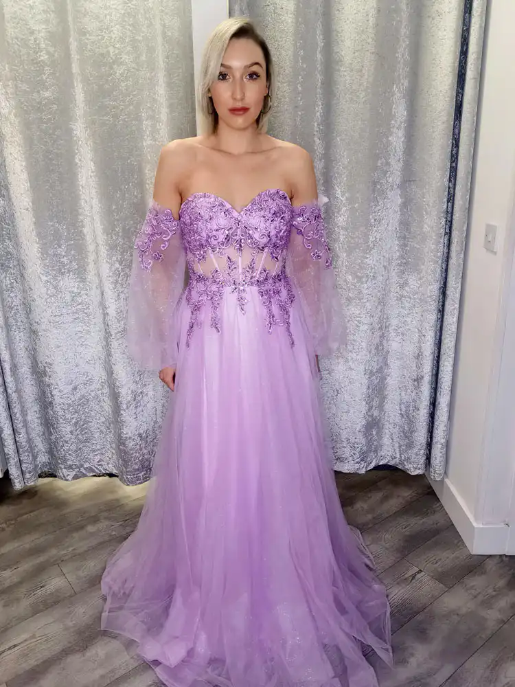 This stunning Phoenix Lilac Ballgown makes an unforgettable entrance with its dreamy lilac tulle skirt that sweeps gracefully to the floor, catching the light with a beautiful shimmer throughout. The strapless sweetheart neckline frames the intricate corset bodice, which is adorned with delicate floral lace appliqué and sheer boning detail for a truly romantic, fairytale feel. Perfect for your debs night, this gown effortlessly combines elegance and glamour to ensure you’ll be the belle of the ball. An in-store exclusive available only at Obsession Showroom.