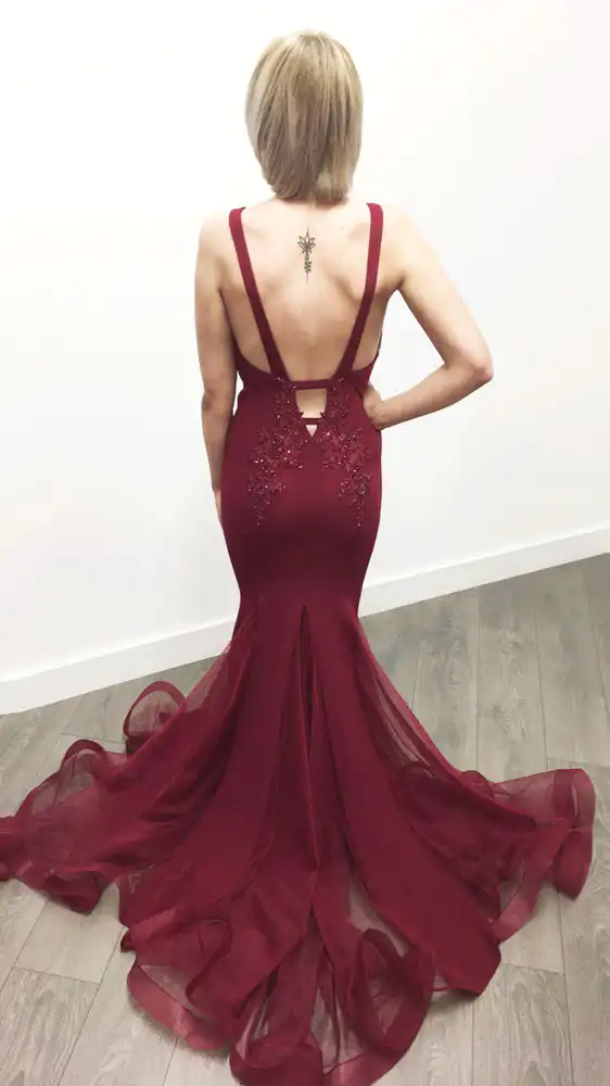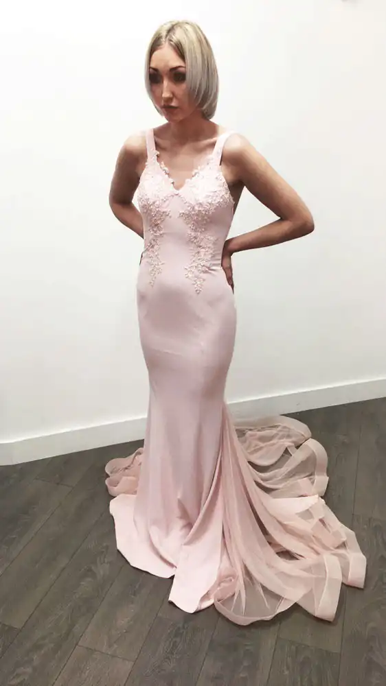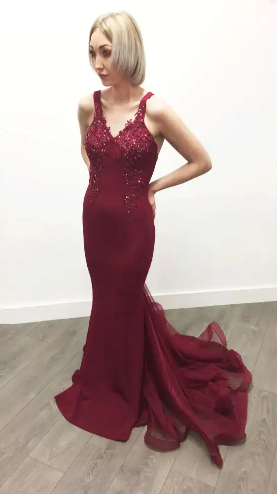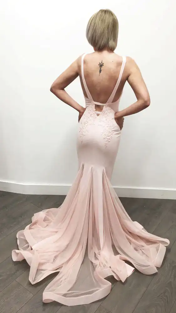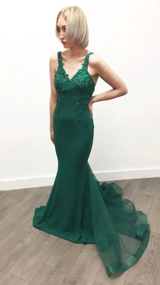Pia1734 is a stunning yellow mermaid gown that exudes elegance and glamour, making it the perfect choice for your debs night. Crafted from a sleek, stretch satin fabric, this figure-hugging silhouette features a deep V-neckline adorned with delicate lace appliqué detailing on the bodice, flowing effortlessly into a sweeping train. A showstopping choice for any formal occasion, this dress is guaranteed to turn heads and leave a lasting impression. An in-store exclusive available only at Obsession Showroom.