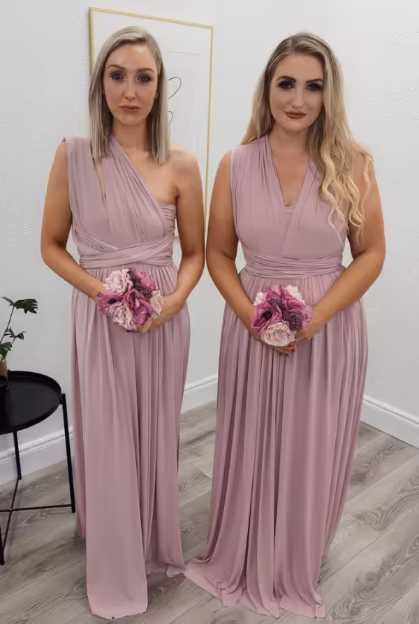 Suit all your bridesmaids needs in our Reava multiwrap dresses. There are over 30 differnet ways to wrap this dress based on each bridesmaids personal preferences