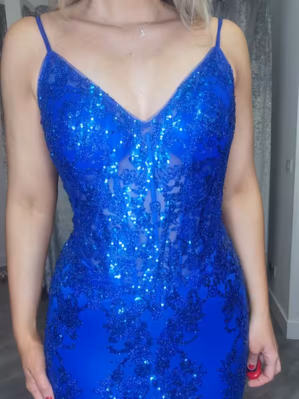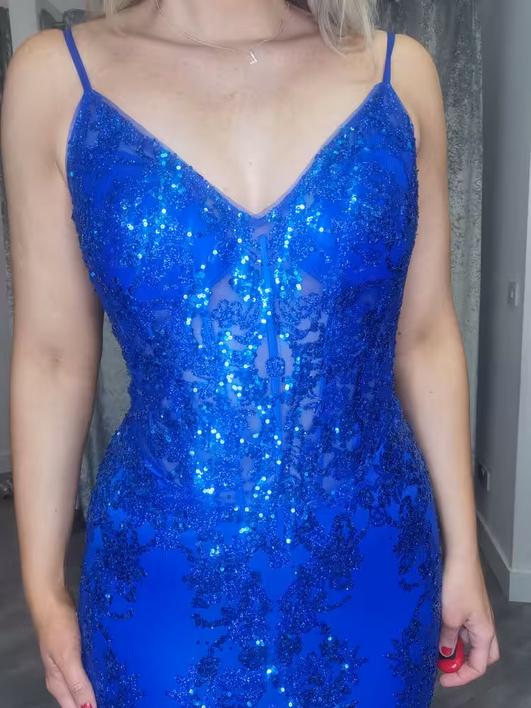 Royal Blue Sequin Corset Gown