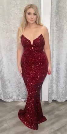 Burgundy Strapless Sequin Dress